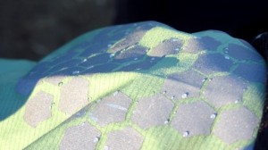 Auf den Bergtouren konnten wir den Erfolg dann testen. Beim Blogger Summit waren wir durchweg erstaunt, wie leicht die Jacken sind und dass das “Guaranteed to keep you dry” Versprechen von Gore wirklich eingehalten wird. Unser subjektiver Eindruck war, dass wir uns trotz der Anstrengung unmittelbar zuvor kaum verschwitzt gefühlt haben, selbst die Bergläufer fühlten sich sehr trocken. An den Schultern der Jacken konnte man auch gleich sehen, warum. Durch die Jacken hindurch, nicht an den Nähten, sondern durch das Material selbst, sind kleine Wassertropfen ausgetreten, wie man auf dem Foto unten sehen kann. Dass die Jacken auch tatsächlich winddicht waren, versteht sich von selbst.
