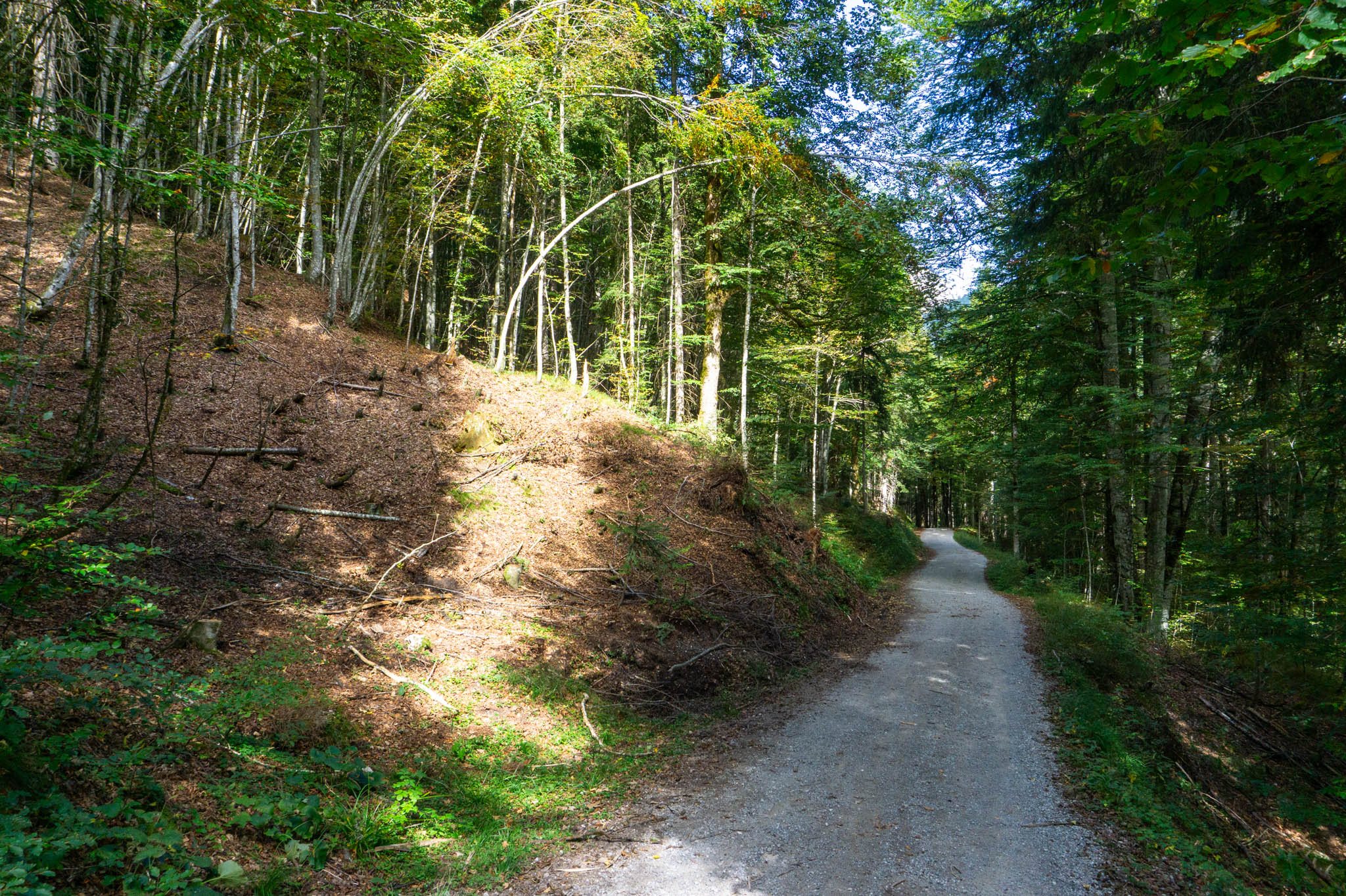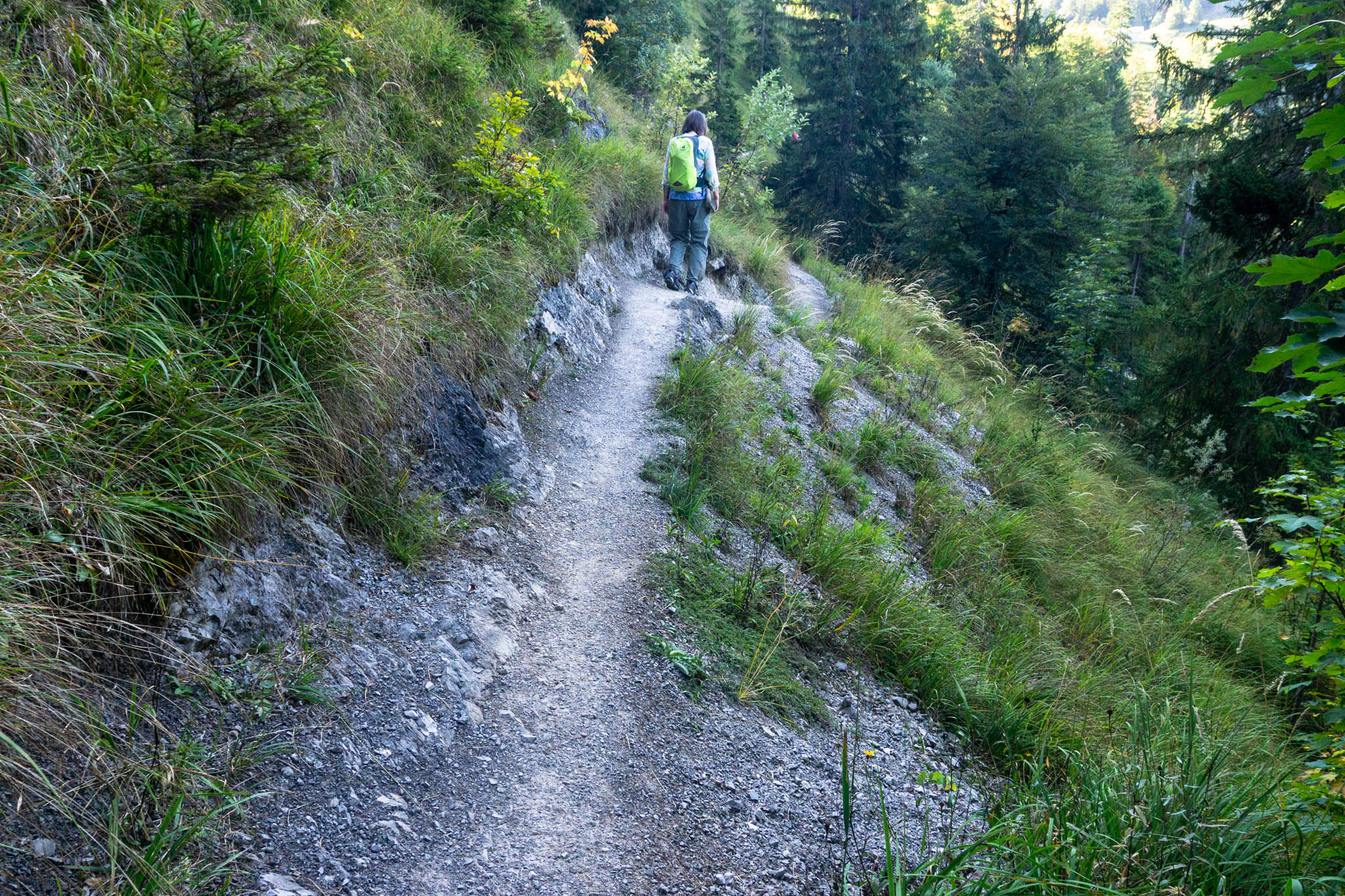 Der Weg ist recht einfach und bei trockenen Wegverhältnissen leicht zu gehen. Aus dem Wald heraus führt er ein Stück am steilen Hang entlang, hier muss man etwas aufpassen.