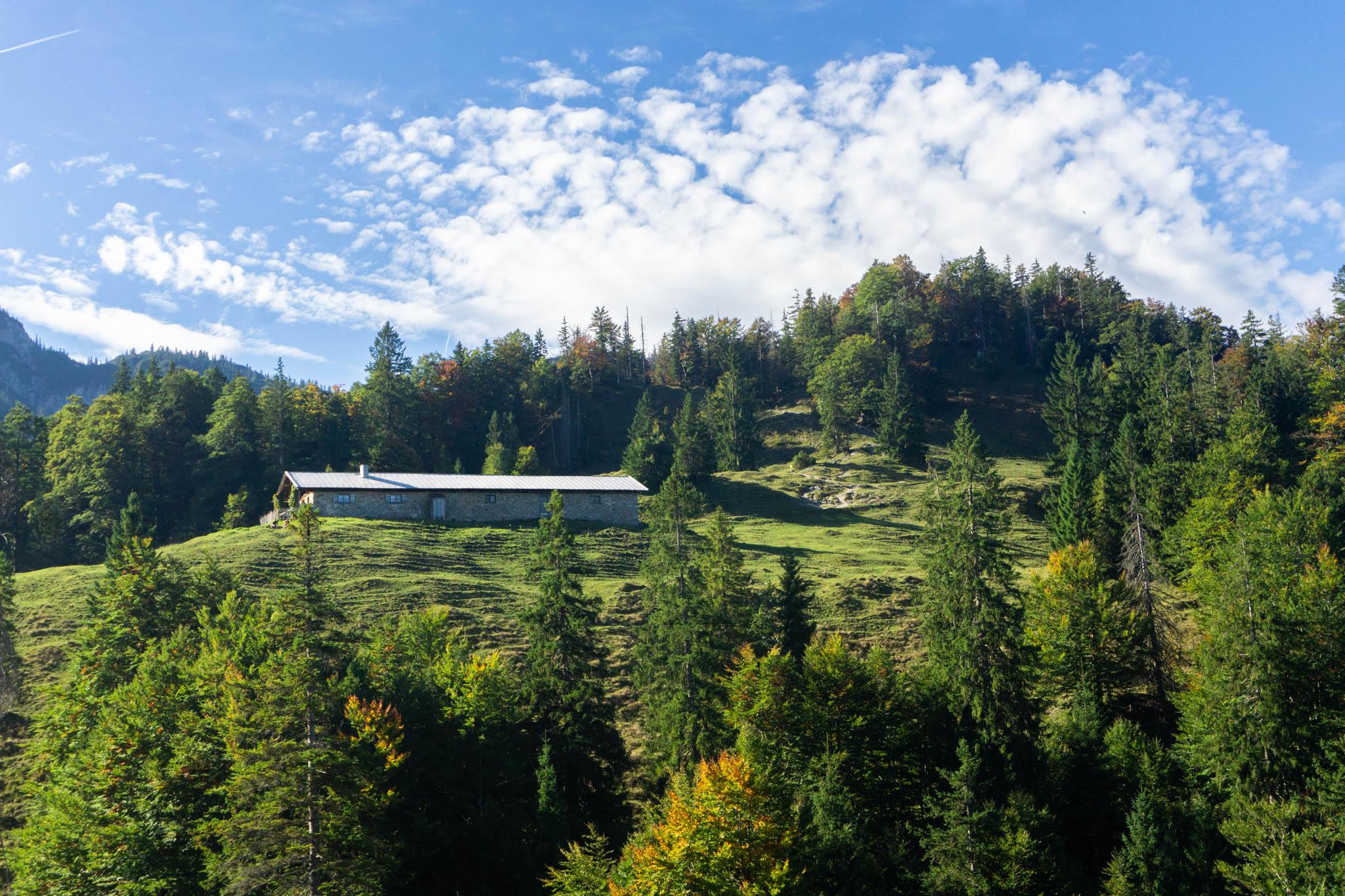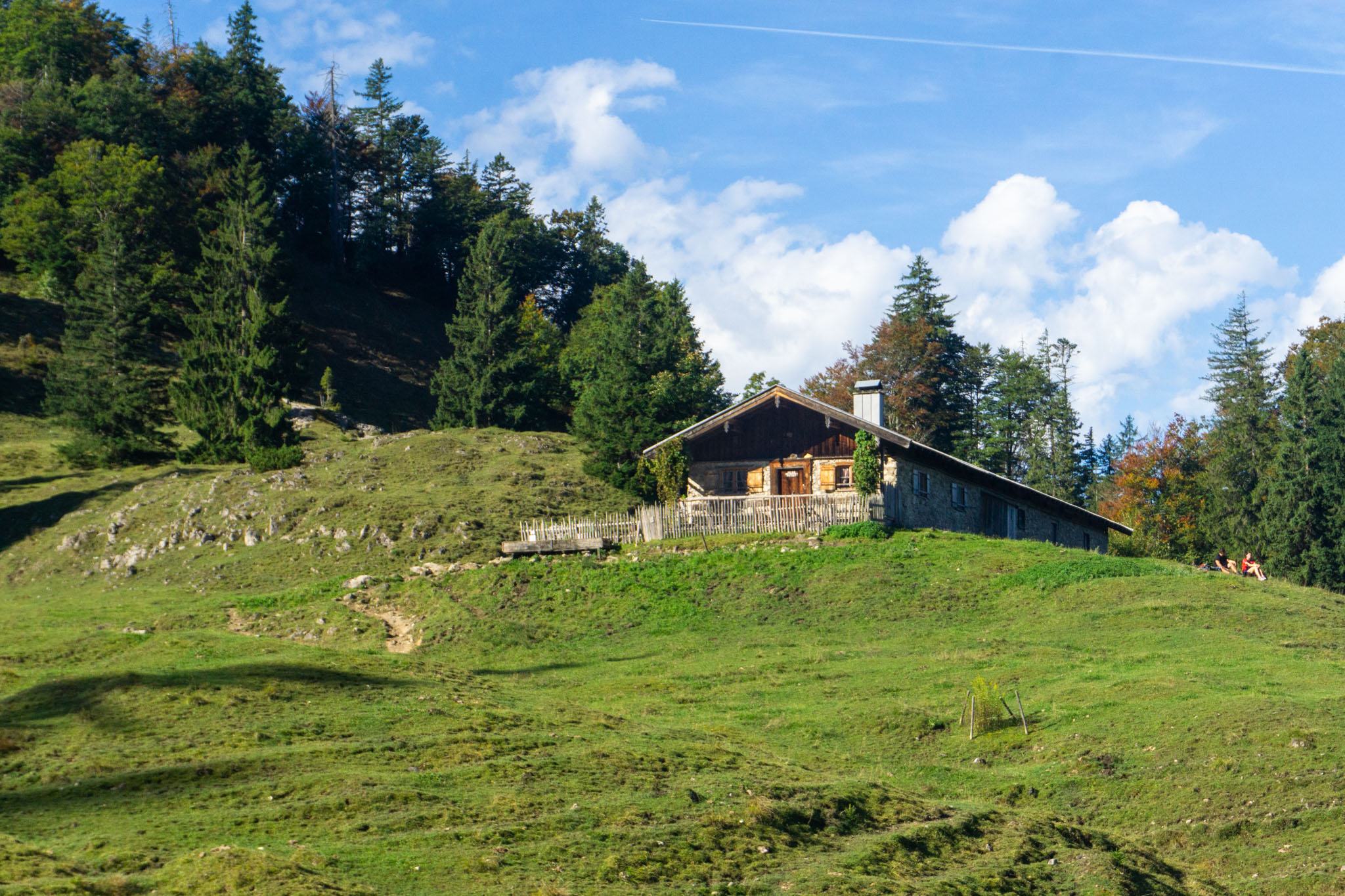 Die Geißalm liegt auf 1113 Metern Höhe und damit praktisch genauso hoch wie die Königsalm. Die Geißalm ist aber privat und nicht bewirtschaftet. Mehrere Schilder weisen darauf hin.
