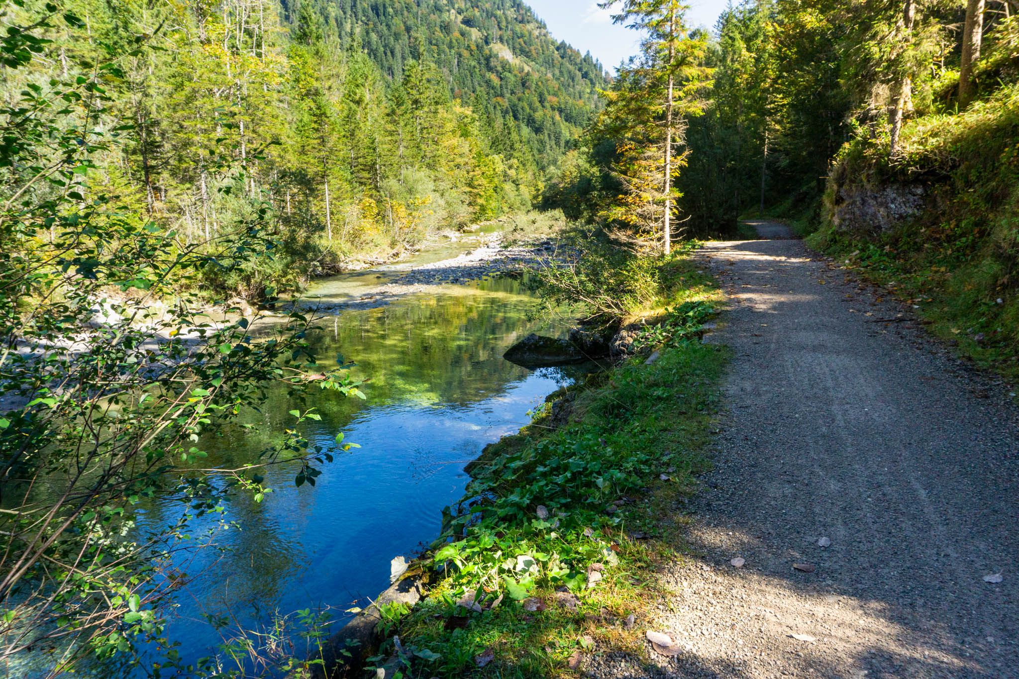Er führt oberhalb der Kreuth-Klamm entlang, die direkt hinter dem Parkplatz beginnt. Es gibt keinen Fußweg durch die kurze Klamm, aber am Ende gibt es eine schöne Badebucht.