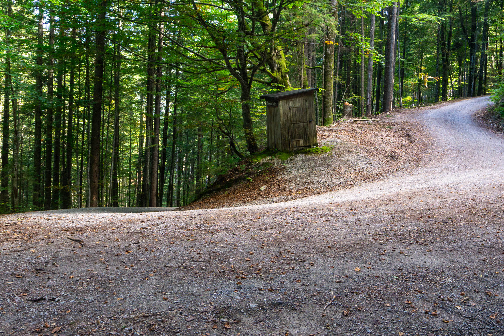 Insgesamt bleibt der Abstieg auf dem breiten Fahrweg für uns Wanderer aber eher unspektakulär. Unten angekommen gehen wir nach rechts und treffen schnell auf den Parkplatz „Klamm“.