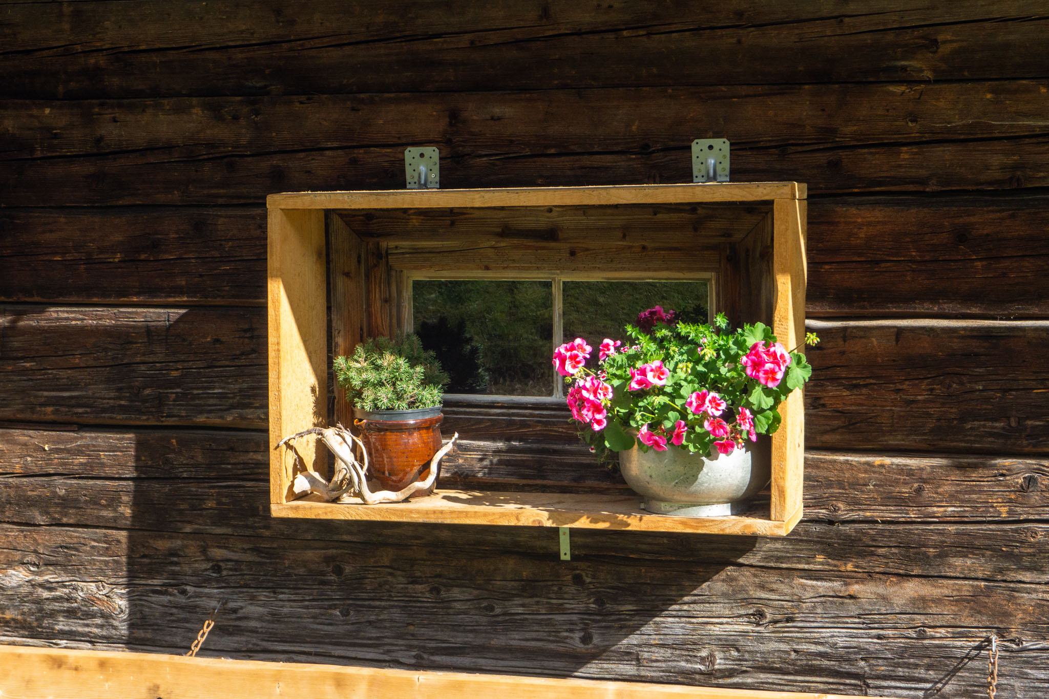 Und damit sind wir auch schon beim einzigen Nachteil, den die Königsalm aufweist: Aussicht gibt es hier nur sehr eingeschränkt. Eigentlich kaum, eher fast gar nicht. Den Ausblick auf die Almfläche und die Gipfel von Leonhardstein, Roß- und Buchstein verhindert das Almgebäude.