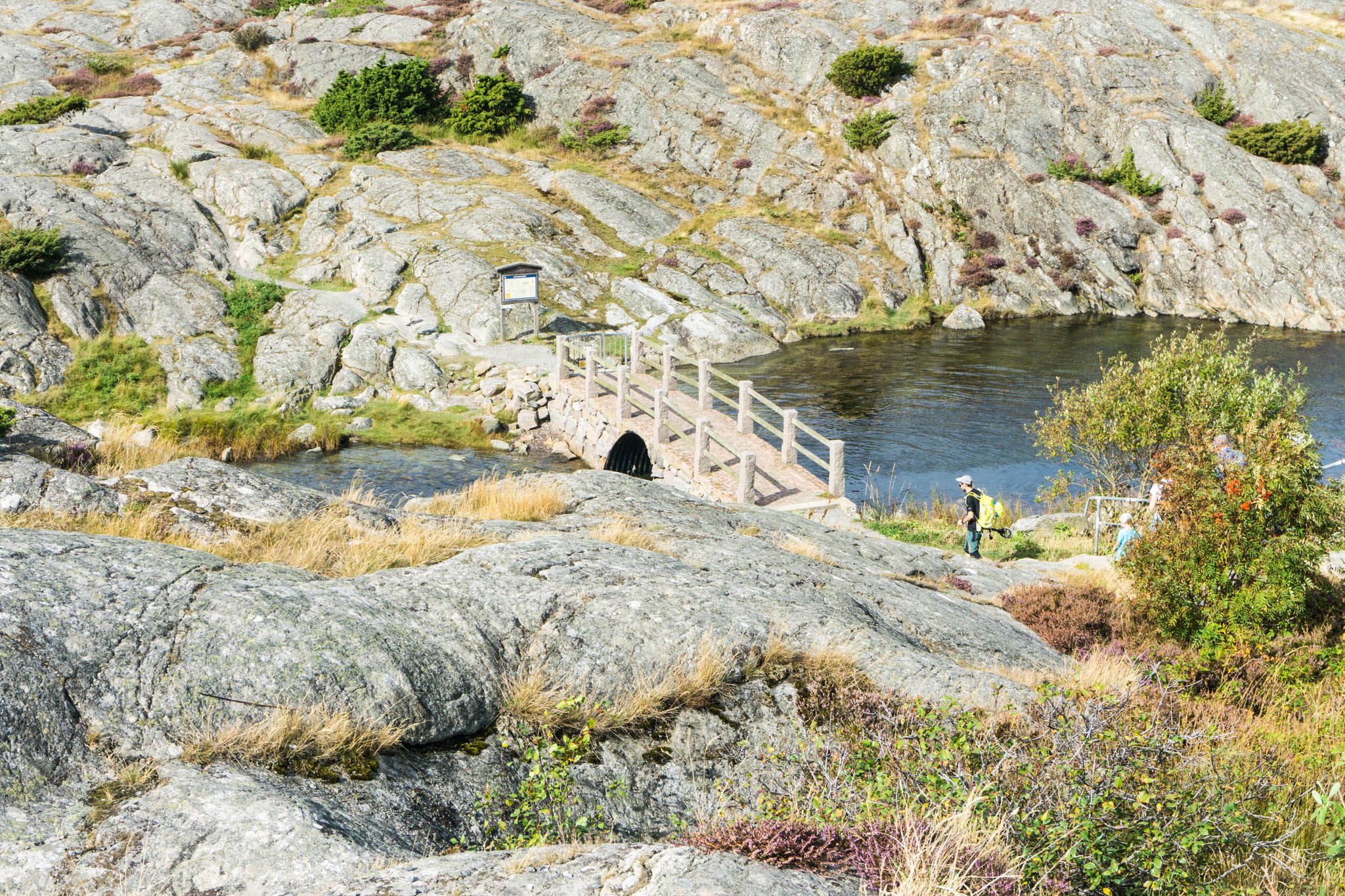 Über Treppen steigen wir zur Brücke ab und gelangen so auf die Insel Galterö, die größtenteils als Naturreservat ausgewiesen ist.