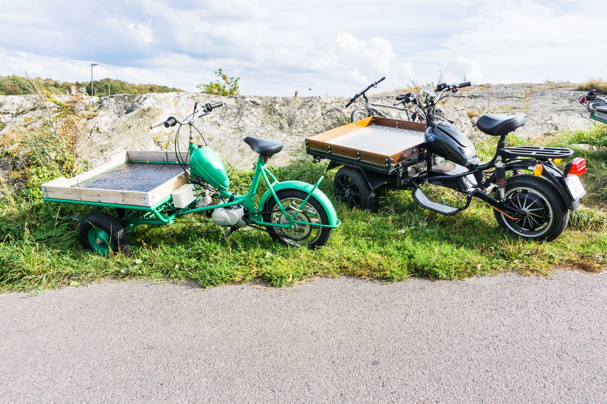 Ein paar der dreirädrigen Mofas mit Ladefläche, die auf den Schäreninseln als Transportmittel genutzt werden