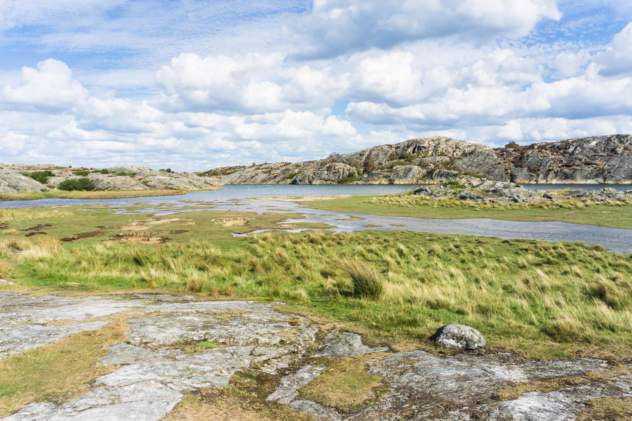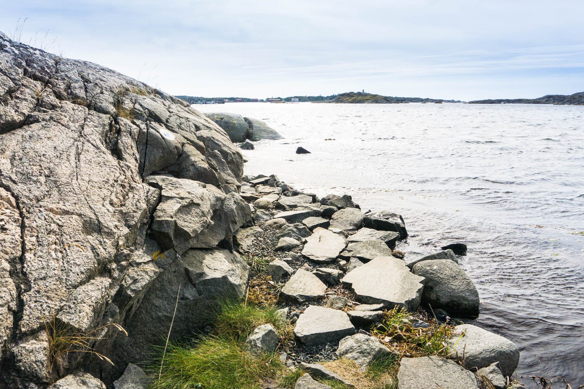 Der Weg ist nun etwas schmaler geworden, ab und zu laufen wir auch über Felsen. Links vor aus scheint ein See zu liegen. Nur wenige Meter weiter sehen wir, dass es gar kein See ist, sondern der Galterösund.