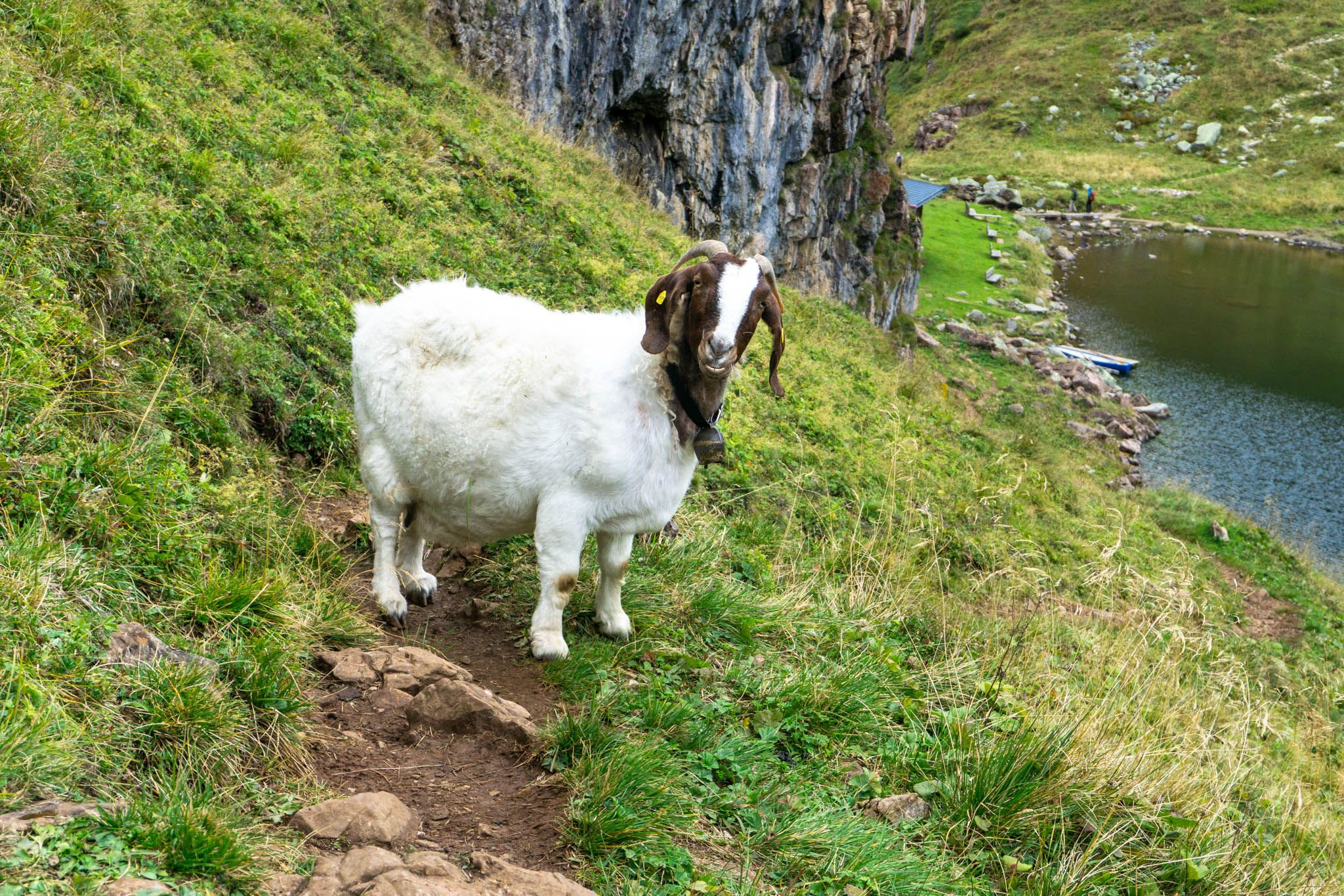 Außerdem merkte der Bergkollege an, dass „der Gipfel total zugeschissen“ ist. Die wolligen Verdächtigen dieser Tat haben wir schon unten am Haus getroffen und wir werden sie auch im Abstieg wieder sehen.