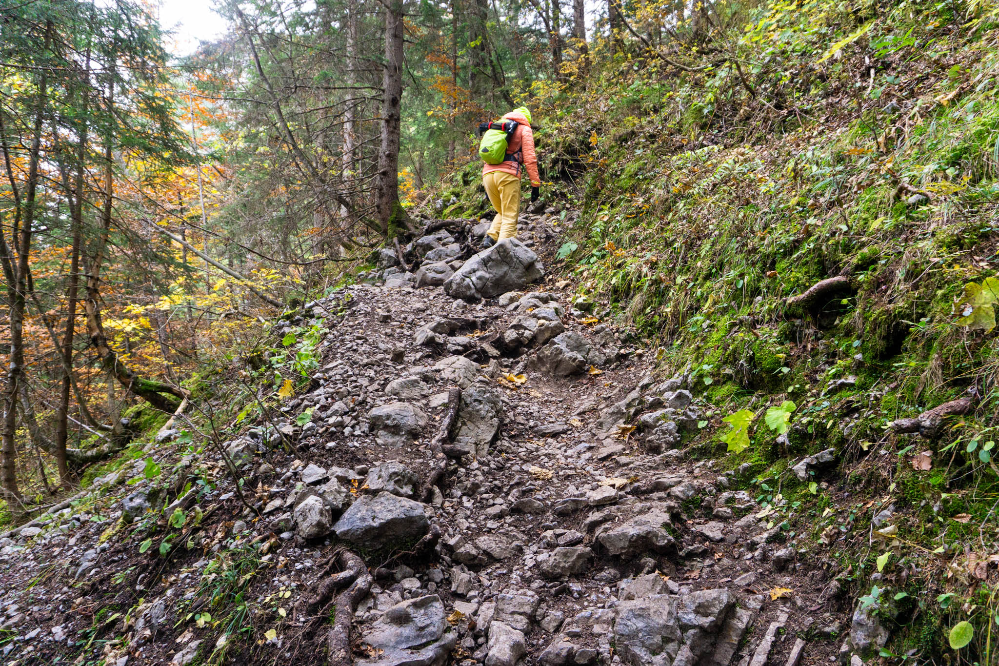 - Auf dem steinigen Bergsteig wandern wir bergauf