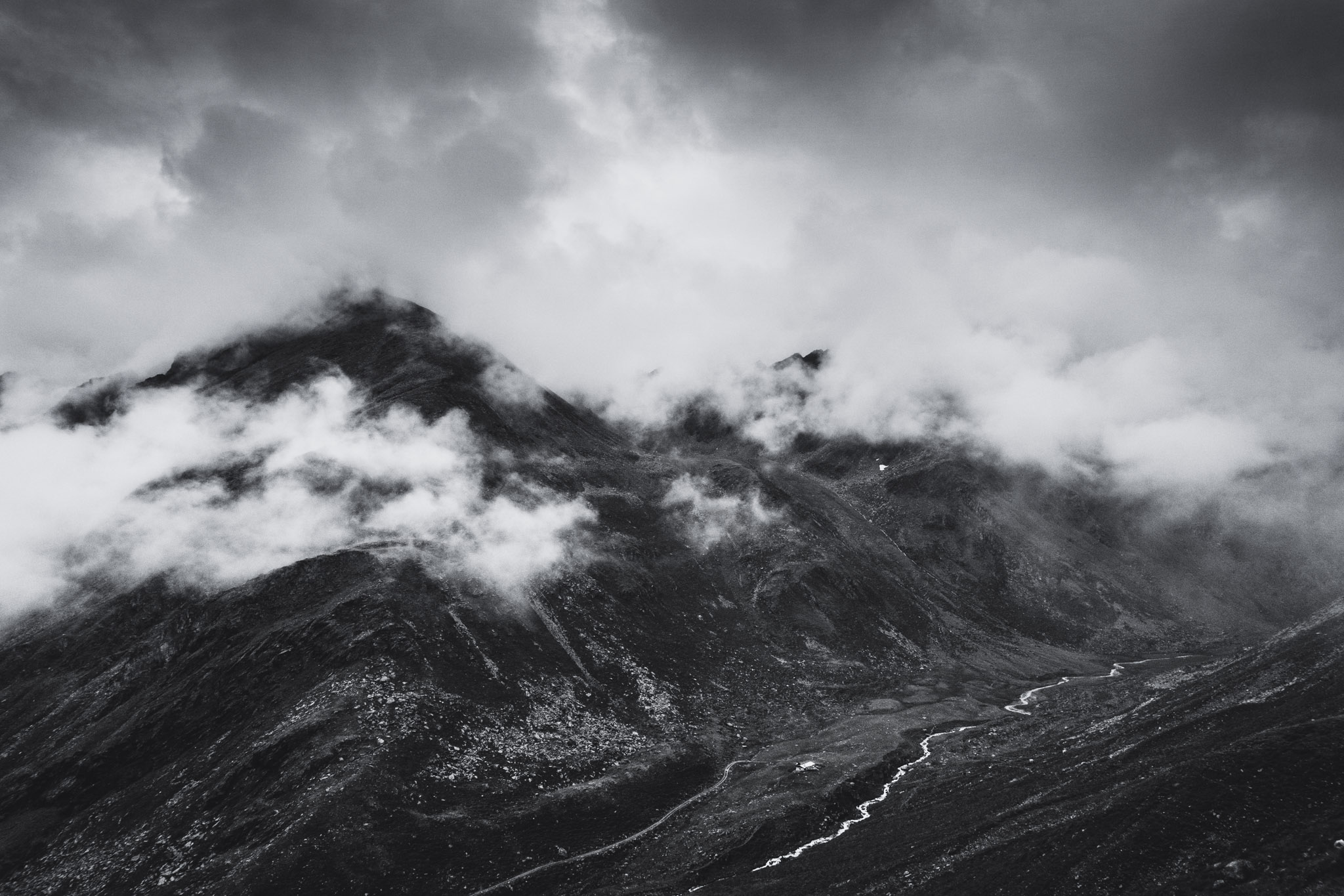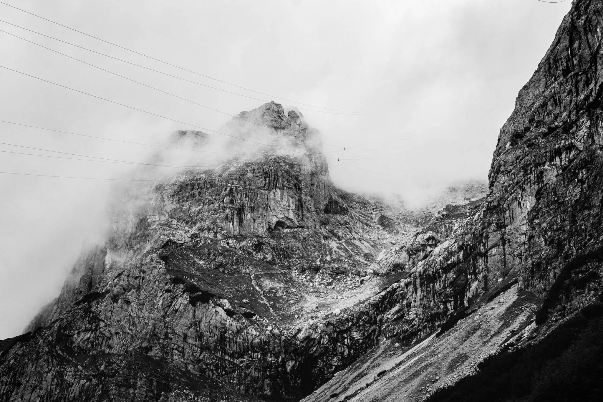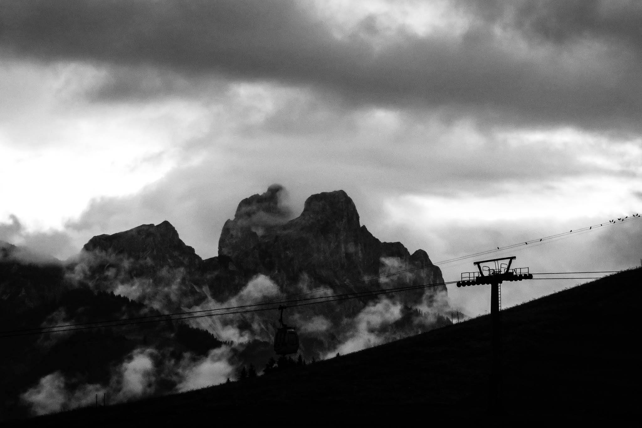 Am Besten funktioniert es, finde ich, mit Fotos mit tiefhängenden Wolken, Wolkenschwaden oder bedrohlichen Gewitterwolken. Also genau dem Wetter, bei dem man den Bergausflug gerne auf das nächste Wochenende verschiebt, in der Hoffnung auf besseres Wetter, sprich Sonnenschein.